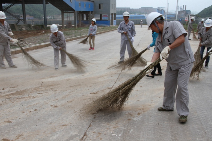 此次义务劳动活动的主要任务是打扫公司的马路卫生。上午9:30时,参加此次活动的党员在公司办公楼前集合,领取工具并做了简单的动员讲话后,并来到公司原料车间矿石堆场南面。此路段因马路路面宽、区域大并且来往矿车频繁,造成马路环境卫生情况较差。但党员们热情饱满、分工明确,经过2个小时的艰苦奋战,共完成了8米宽近2公里的马路卫生,看着自己清扫的干干净净的马路,大家都感到由衷的喜悦。
