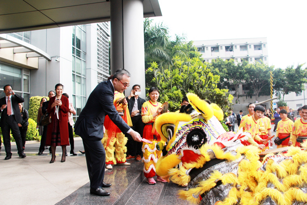 良辰吉时,叶董事长带领干部员工共同祈福,随后,叶鹏智董事长、吴秋颜董事、吴作荣理事长、夏文锋监事长、黄丹华董事、叶鹏勇董事分别为六头祥狮点睛。